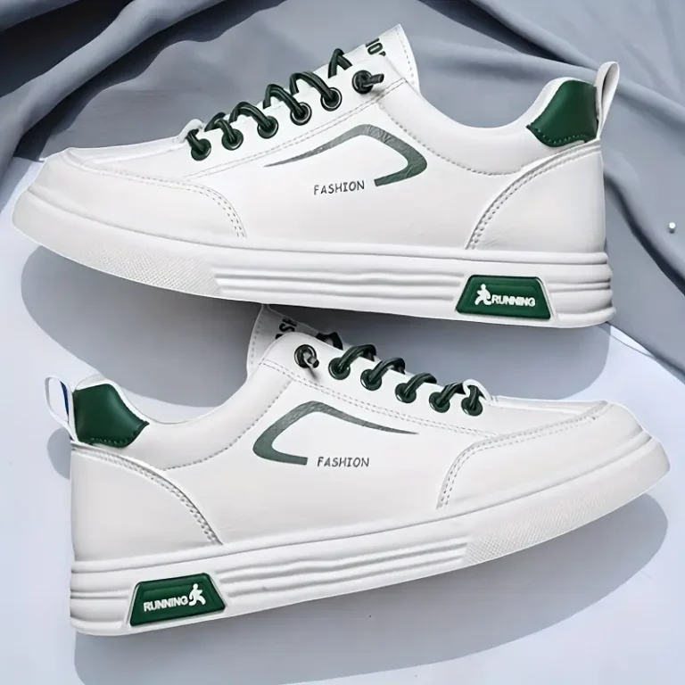 თეთრი სპორტული ბოტასები მწვანე დეტალებით