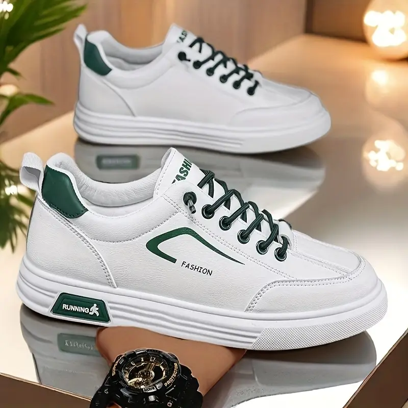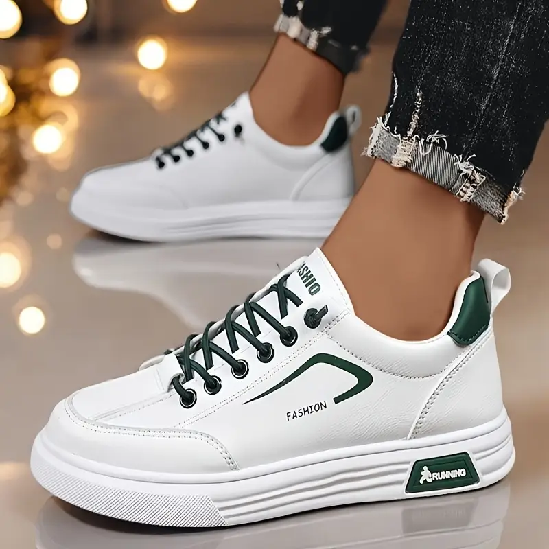 თეთრი სპორტული ბოტასები მწვანე დეტალებით